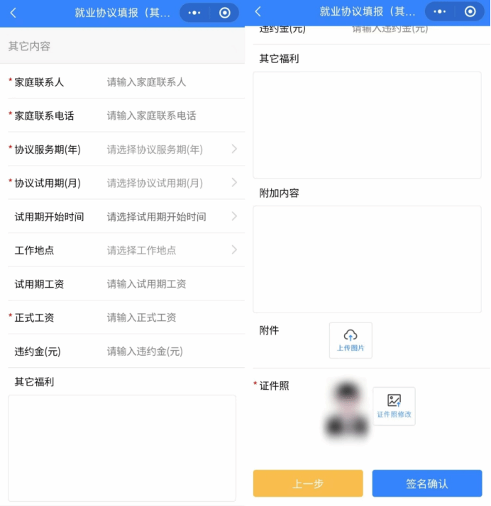 其他字段请根据实际情况如实填写,确认无误后点击下一步。(注:如果遇到不确定的内容,建议和用人单位沟通清楚后再行填报)